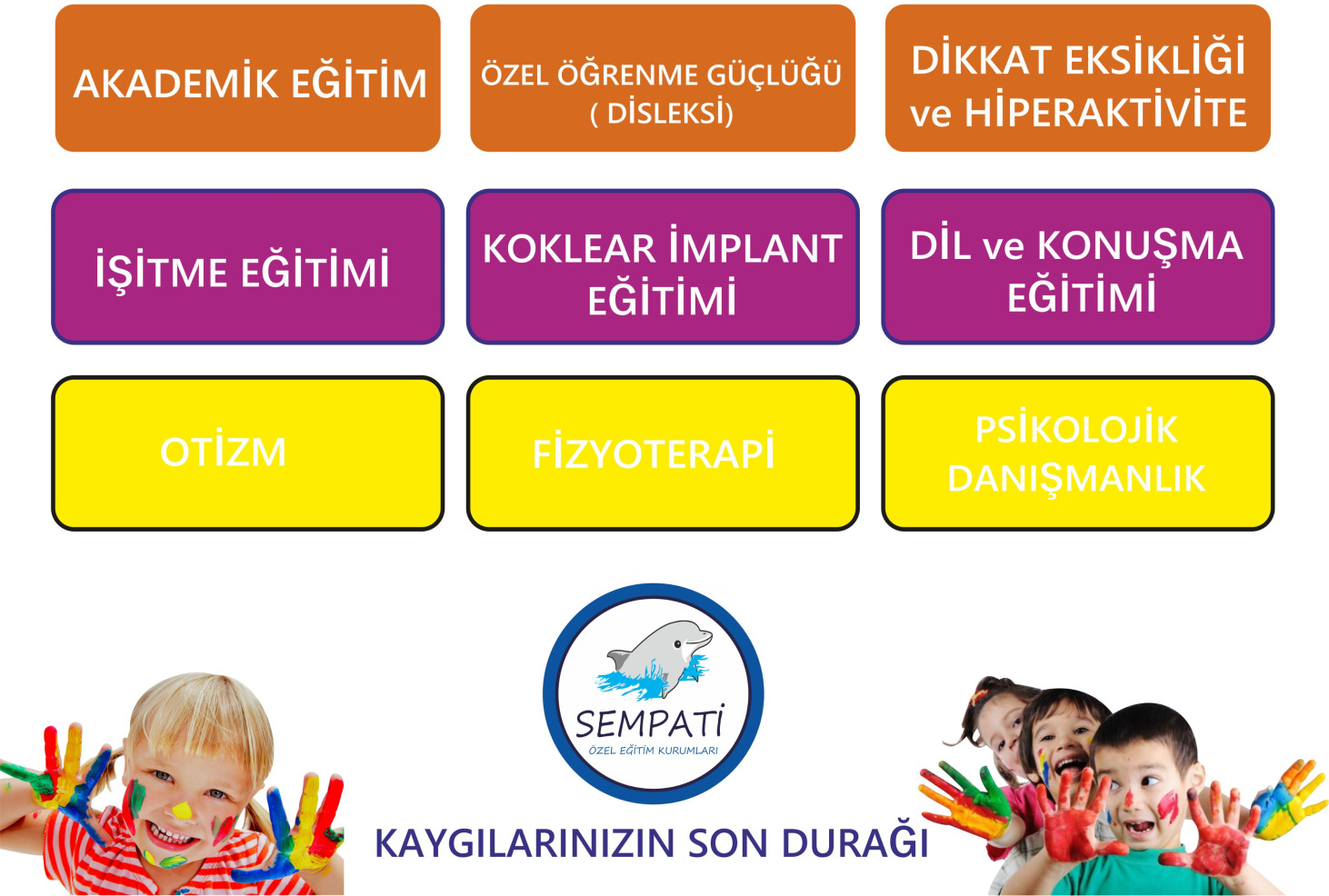 Kurumumuzda hiperaktivite gösteren çocuklar için yapılandırılmış özel eğitim programları uygulanmaktadır. Eğitim sürecinde; dikkat süresini artırmaya, davranışları kontrol etmeye ve sosyal becerileri geliştirmeye yönelik bireysel çalışmalar yapılır. Deneyimli özel eğitim öğretmenlerimiz ve uzman psikolojik danışmanlarımız tarafından yürütülen bu süreçte, çocuğun ihtiyaçlarına uygun davranışsal stratejiler geliştirilir. Aile desteğiyle birlikte sürdürülen bu programlar sayesinde çocuklarımızın hem akademik hem de sosyal gelişimleri desteklenir, okul ve günlük yaşama uyumları artırılır.